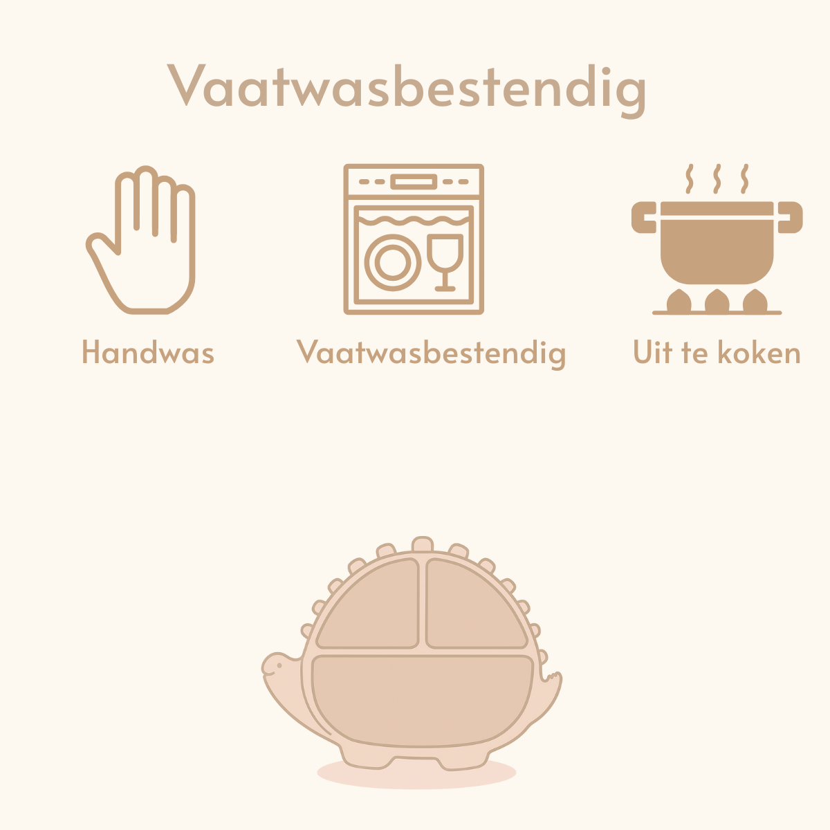 Dino Siliconen Babyservies – 5-delige Set in Beige | byKiekeboe